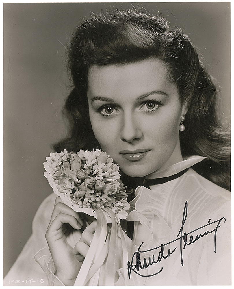 Glossy 7.75 x 9.5 photo of Fleming holding a small bouquet, signed in black felt tip. A couple horizontal streaks to the finish and lightly trimmed edges, otherwise fine condition. Pre-certified PSA/DNA and RR Auction COA.
