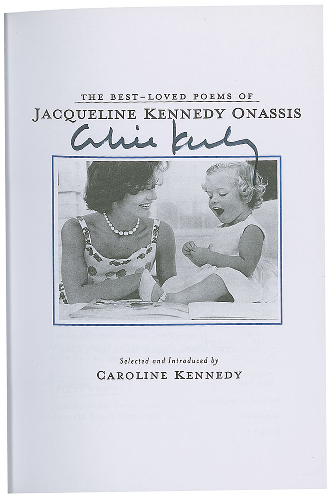 Signed book: Best Loved Poems of Jacqueline Kennedy Onassis. First edition, first printing. NY: Hyperion, 2001. Hardcover with dust jacket, 6 x 8.5, 180 pages. Signed on the title page in black felt tip. In very fine condition. RR Auction COA.