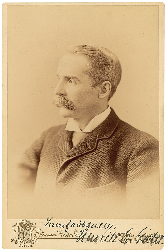 Educator (1848–1922) who served as president of Rutgers and Amherst. Original 4.25 x 6.5 cabinet photo by Notman of Boston, signed in the lower border in black ink, “Yours faithfully, Merrill E. Gates.” In fine condition, with a few brushes to signature. RR Auction COA.
