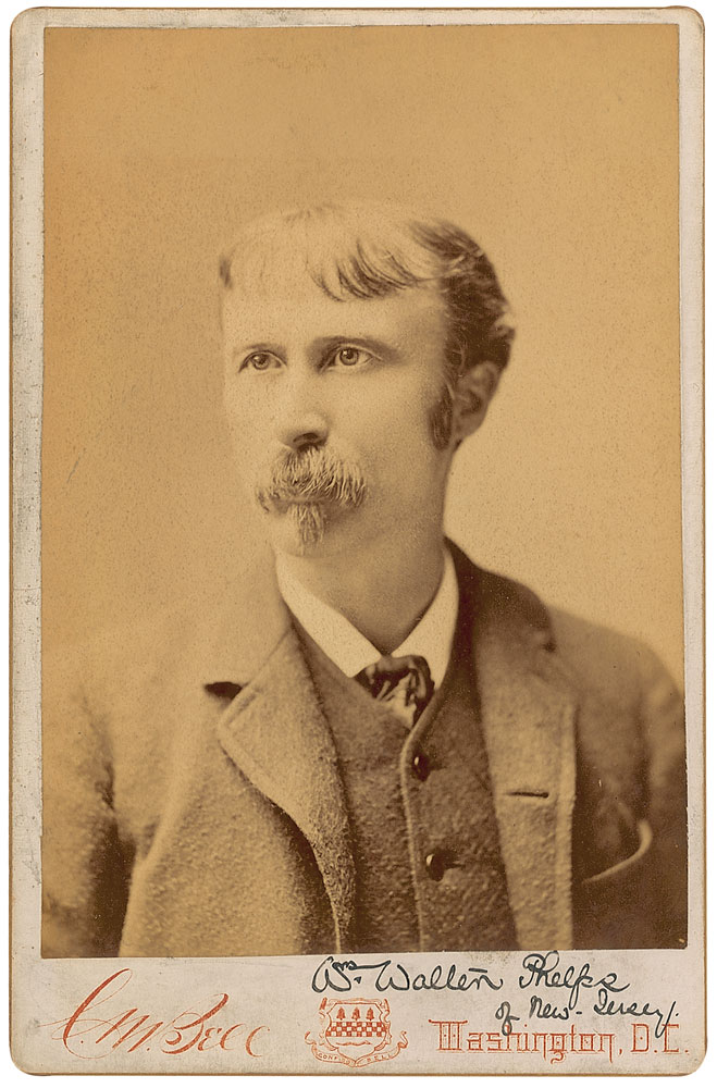New Jersey congressman and ambassador to Germany, as well as a prolific arborculturist and art collector (1839–1894). Original 4.25 x 6.5 cabinet photo by C. M. Bell of Washington, signed in the lower border in black ink, “Wm. Walter Phelps of New Jersey.” In fine condition, with scattered surface marks. RR Auction COA.