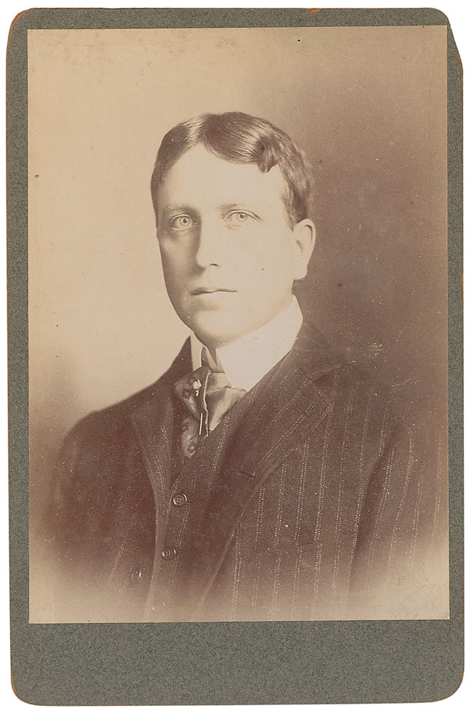 Mining magnate, owner of the San Francisco Daily Examiner, and founder of the Hearst fortune; he expanded sensationalistic journalism (1863–1951). Unsigned original 4.25 x 6.5 cabinet photo of a youthful Hearst by an anonymous studio. Chipping to corners of the mount, otherwise fine condition. RR Auction COA.