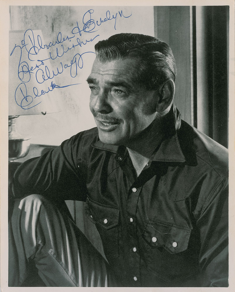 This jacket was originally presented to Gable’s driver during filming, Charles Coffman, and is attested to by the presence of the photograph signed and inscribed to him, as well as the photograph of Gable wearing the jacket on set with Coffman. The usual studio labels are not present, as Gable actually purchased the jacket directly from a store in town, a special occurrence that is fondly remembered by its residents. A most desirable relic from a film many critics, as well as Gable himself, agree to be the actor’s finest work. RR Auction COA.