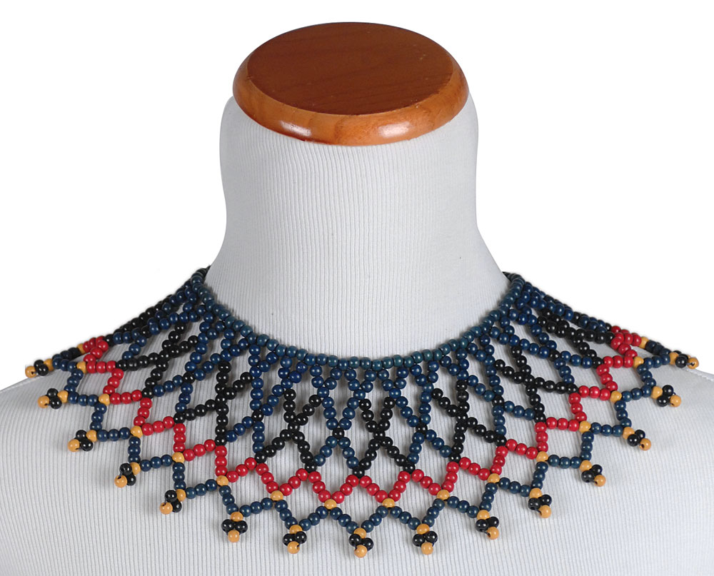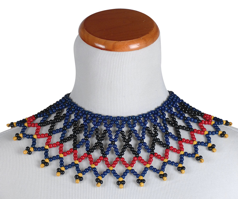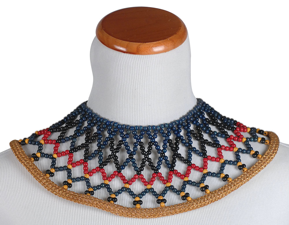Three similar red, blue, black, and yellow beaded necklaces from the 1956 classic epic The Ten Commandments. One is trimmed with gold ribbon. In overall fine condition. RR Auction COA.