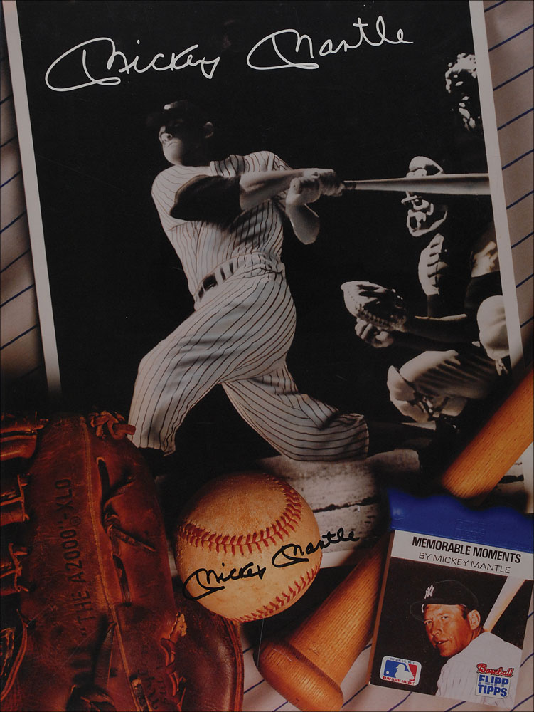 Color 18 x 24 poster honoring Mantle, signed at the bottom in thick black felt tip. Rolled and in fine condition. Pre-certified Steve Grad/PSA/DNA and RR Auction COA.