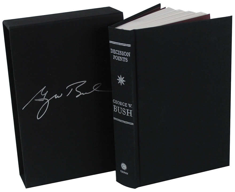Signed book: Decision Points. Limited first edition, first printing (this being no. 1173). NY: Crown Publishers, 2010. Hardcover with slipcase, 6.5 x 9.5, 497 pages. Signed on the colophon in black felt tip by Bush. In very fine, never before read condition. The interior pages including the signed page remain pristine. Pre-certified PSA/DNA and RR Auction COA.