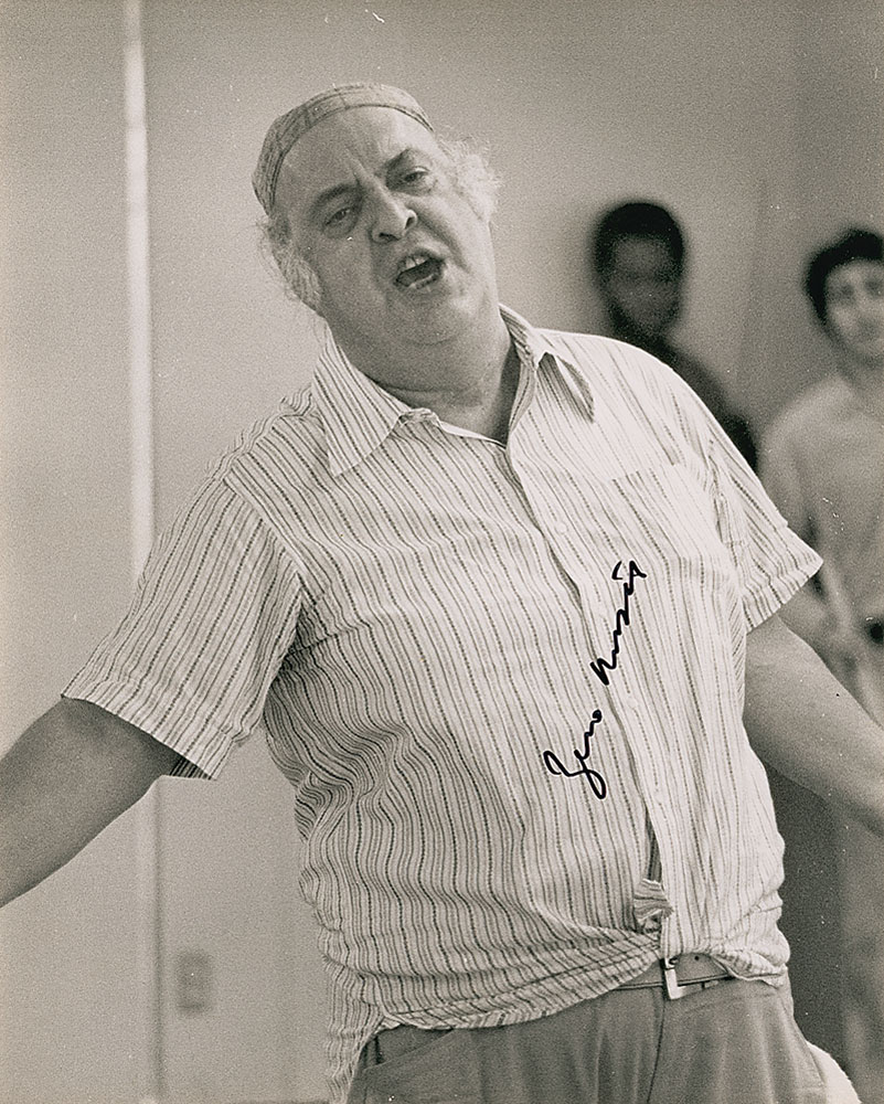 Glossy 8 x 10 photo of Mostel looking a bit disheveled, signed in black felt tip. In fine condition. Pre-certified PSA/DNA and RR Auction COA.