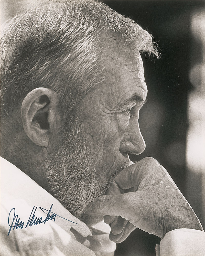 Satin-finish 8 x 10 close-up photo of Huston deep in thought, signed in black felt tip. In very fine condition. Pre-certified PSA/DNA and RR Auction COA.