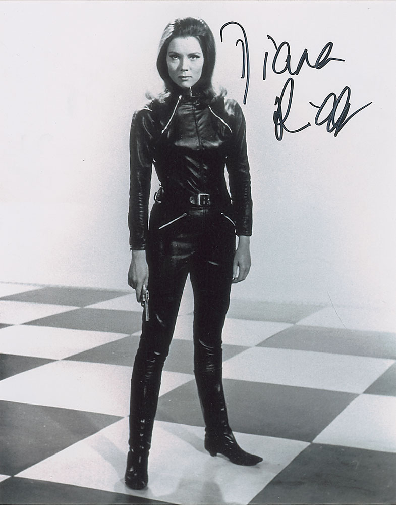 Glossy 8 x 10 photo of Rigg as she appeared in The Avengers, signed in black felt tip. In fine condition. Pre-certified PSA/DNA and RR Auction COA.
