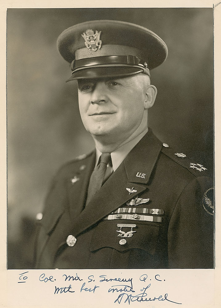 Vintage matte-finish 8 x 11.25 photo, signed and inscribed in the lower border in fountain pen “To Col. Mu. S. Sweeny, Q. C., with best wishes of H. H. Arnold.” In fine condition, with barely noticeable thin ink lines along vertical edges of image. Pre-certified PSA/DNA and RR Auction COA.
