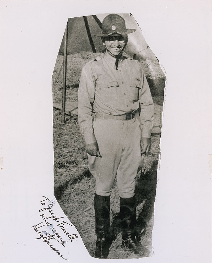 Vintage glossy 8 x 10 photo of Harry Truman in military uniform as Captain of Battery D, signed and inscribed in black ink “To Joseph Fricelli, Kind regards, Harry S. Truman.” A few light brushes to inscription, as well as a single stroke of signature, otherwise fine condition. Pre-certified John Reznikoff/PSA/DNA and RR Auction COA.