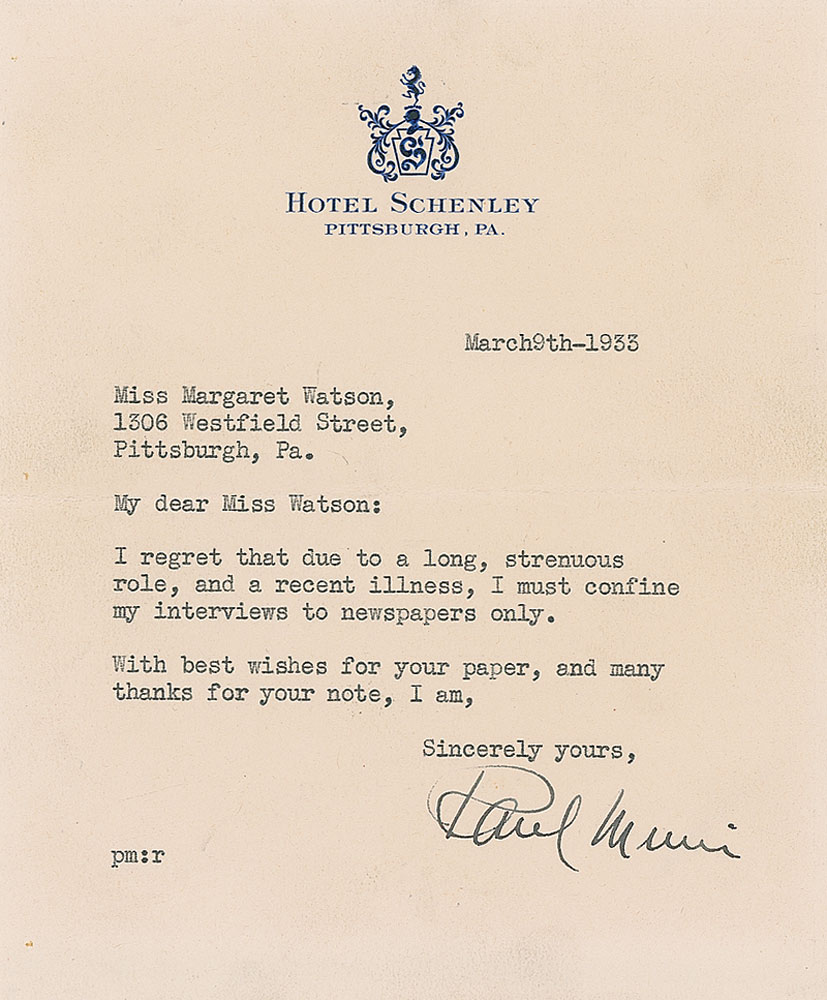 Paul Muni Typed Letter Signed