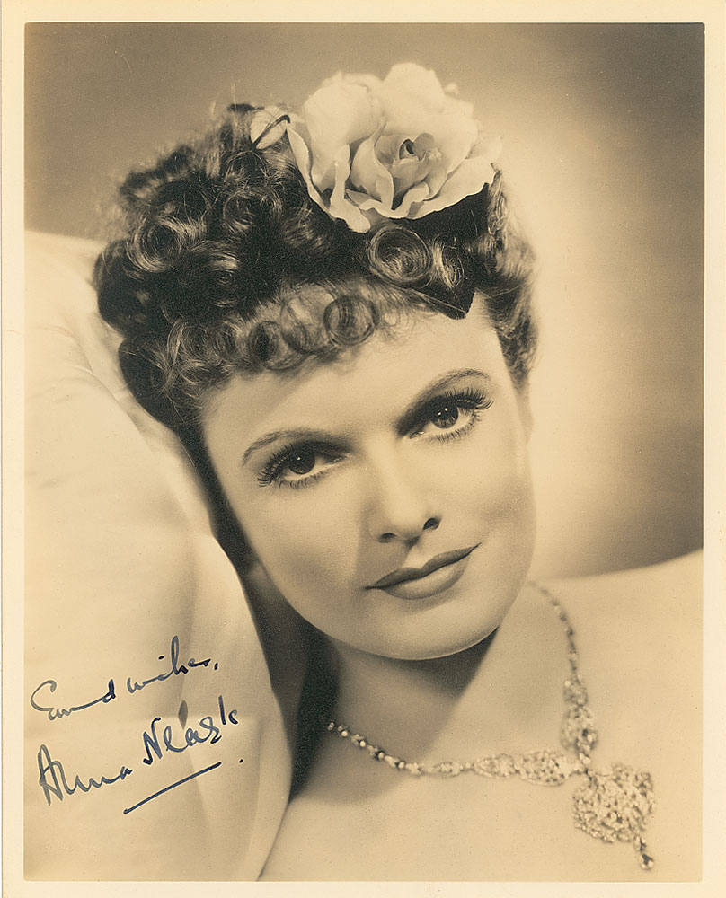 Pretty vintage matte-finish 8 x 10 head-and-shoulders photo, signed in fountain pen, “Good wishes, Anna Neagle.” In fine condition. Pre-certified PSA/DNA and RR Auction COA.