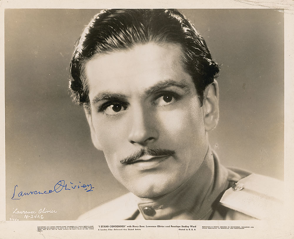 Glossy 10 x 8 United Artists promotional photo for I Stand Condemned, signed in blue ink. In very good condition, with scattered creasing. Pre-certified PSA/DNA and RR Auction COA.