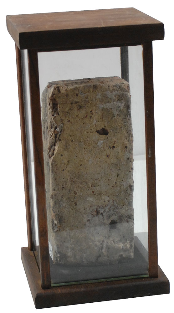This brick was picked up by David Christensen at the time workmen were tearing down the building at 2122 North Clark Street, the site of ‘Bugs’ Moran’s garage and booze depot at the time of the St. Valentine’s Day Massacre on February 14, 1929. The garage was soon refurbished and rented or sold to other companies, the last of which used it mainly for storage before it was razed in 1967. At that time a Canadian, George Patey, arranged with the demolition company to purchase and label the section of bricks from the building’s north wall where the shootings had taken place, and he later rebuilt it in the men’s room of his dinner club. In 1980, the here-offered brick was acquired directly from Christensen by noted gangland historian Bill Helmer.