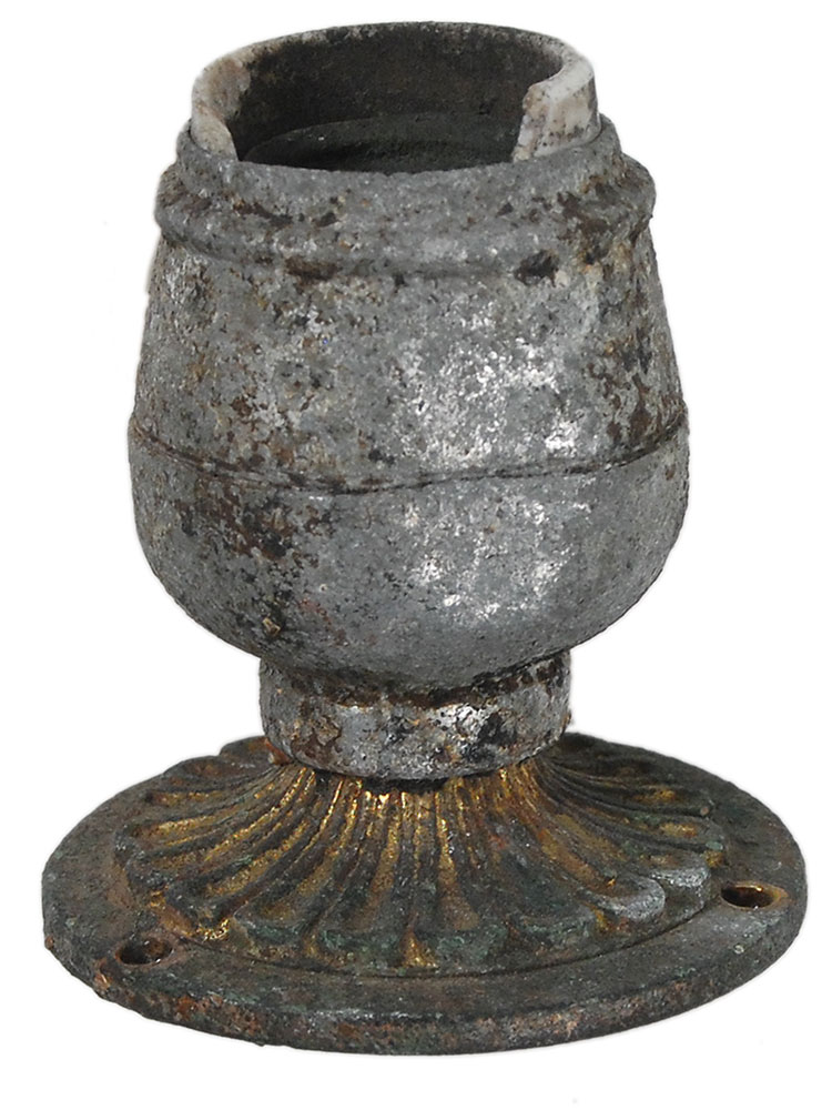 Porcelain and metal light fixture from Chicago’s Lexington Hotel. Single bulb fixture measures 3.25″ tall with a decorative floral base. In very good condition, with the porcelain rim broken and light overall corrosion. Occupied by Capone from 1928–1932, in later years souvenir hunters slipped inside the building and salvaged whatever was convenient. The here-offered light fixture was removed from a once-elegant chandelier that lay on the floor of Capone’s office, a large round room with parquet flooring, at the southwest corner of the building. Accompanied by a letter of authenticity from well-respected gangland historian Bill Helmer. RR Auction COA.