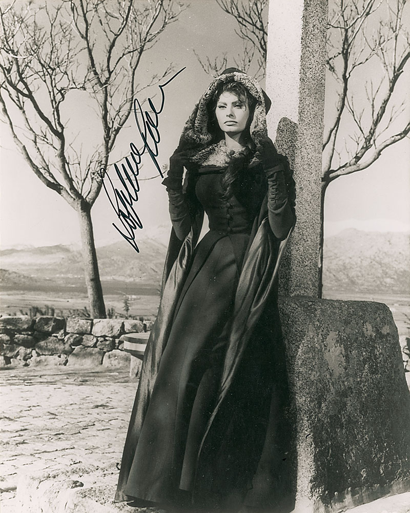 Glossy 8 x 10 full-length photo of Loren outside during winter, signed in black felt tip. In very fine condition. Pre-certified PSA/DNA and RR Auction COA.