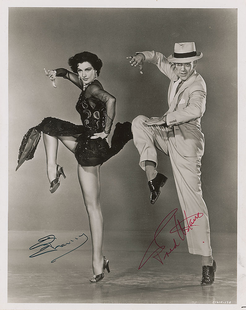 Glossy 8 x 10 photo of the pair in dramatic dancing poses, signed in red ink by Astaire and black felt tip by Charisse. In fine condition. Pre-certified PSA/DNA and RR Auction COA.