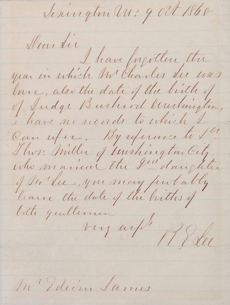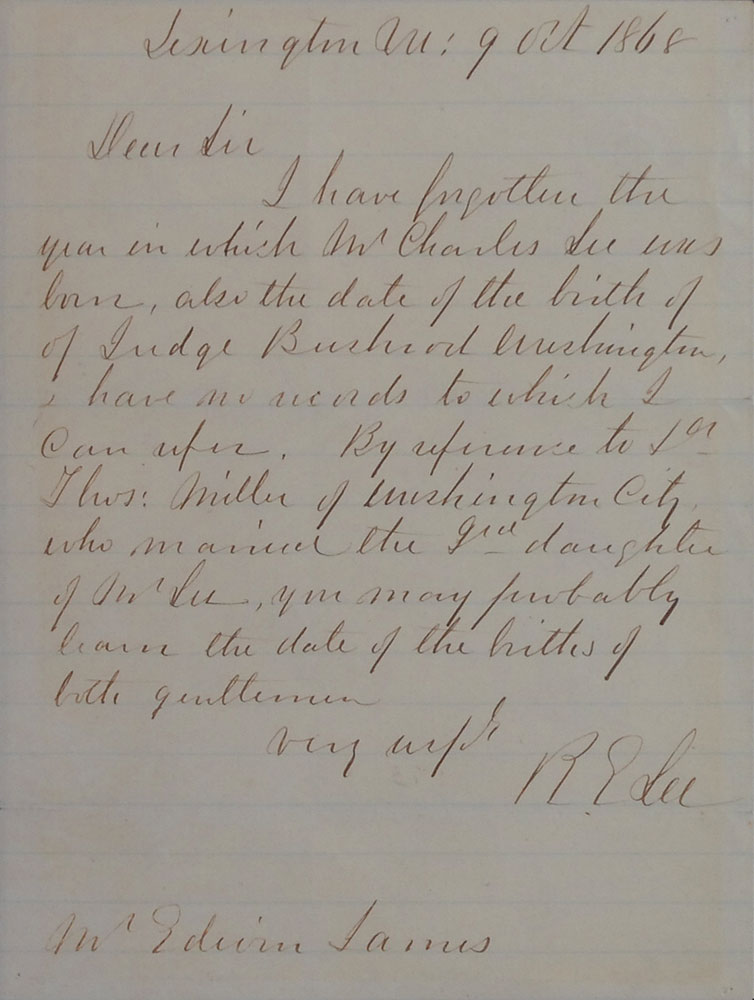 Robert E. Lee: “I have forgotten the year in which Mr. Charles Lee was born, also the date of the birth of Judge Bushrod Washington”