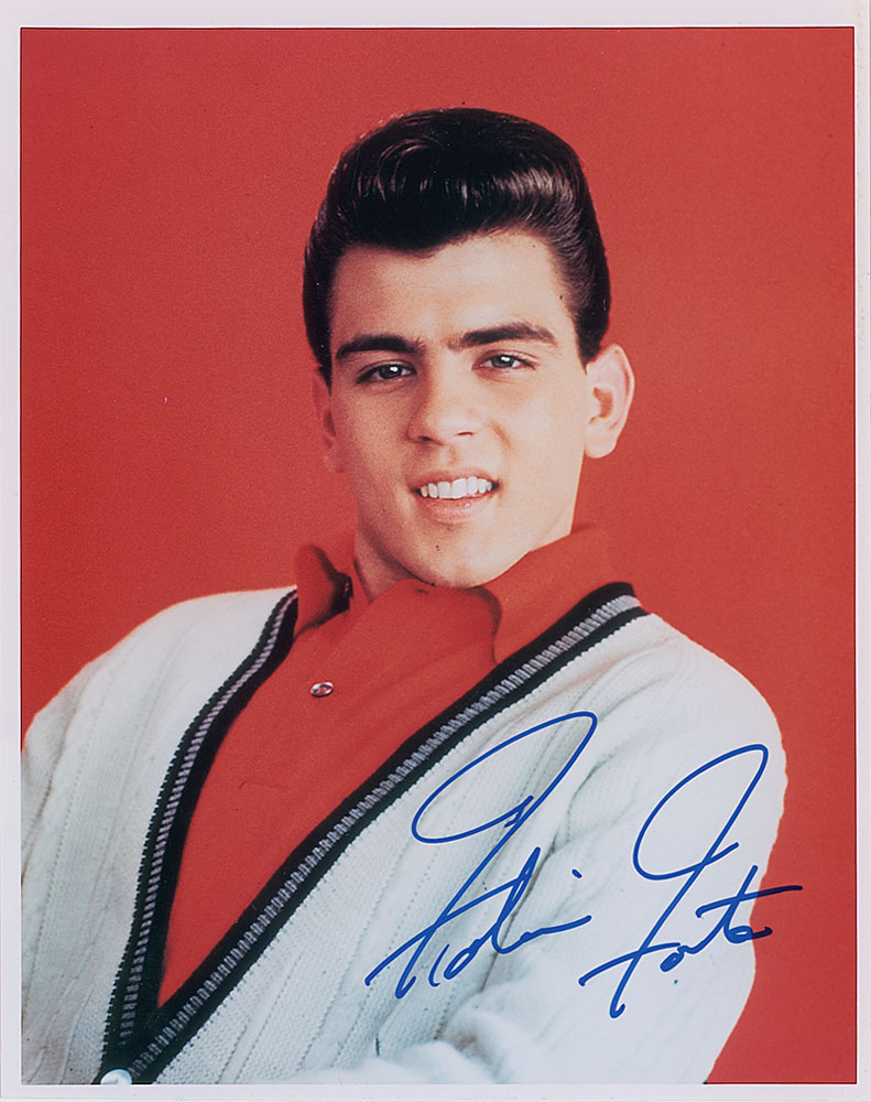 Two different color glossy 8 x 10 photos of Fabian during his prime, each signed in blue felt tip with the addition of his seldom used last name, “Fabian Forte.” In very fine condition. RR Auction COA.