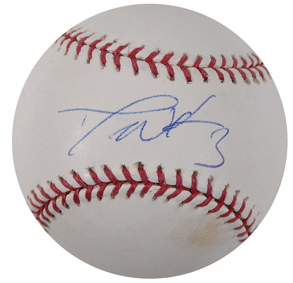 Official Rawlings Major League baseball signed in blue ballpoint on the sweet spot. In fine condition, with a spot of toning below the signature and PSA/DNA label affixed to reverse. Accompanied by a certificate of authenticity from PSA/DNA. RR Auction COA.
