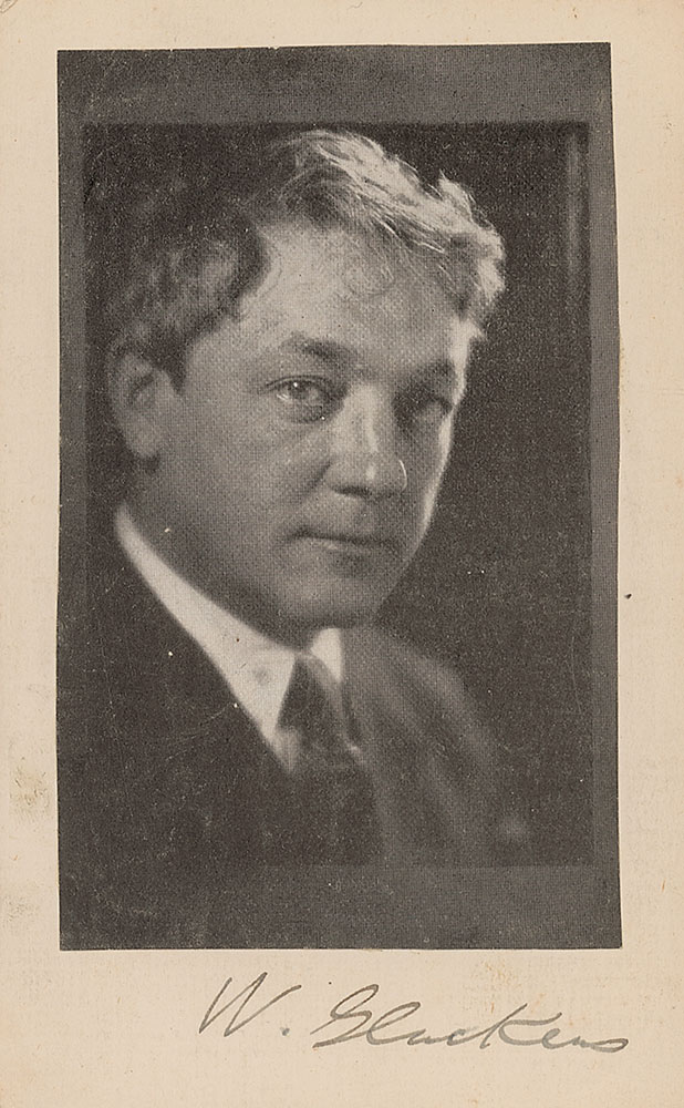 Vintage 2.5 x 3.75 book photo, affixed to a 3.25 x 5.25 mount, signed on the mount in black ink, “W. Glackens.” In fine condition, with a couple trivial ripples and corner tip dings. RR Auction COA.