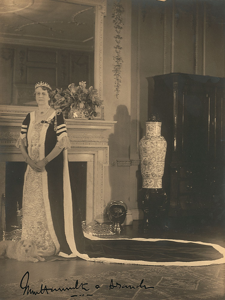 Duchess of Hamilton (1878–1951) and early animal rights activist who co-founded the the Animal Defence and Anti-Vivisection Society. Vintage matte-finish 6.25 x 8.25 full-length portrait affixed to its slightly larger original photographer’s mount, signed in black ink at the bottom of the image, “Nina Hamilton & Brandon.” Irregularly trimmed edges to mount, otherwise fine condition. RR Auction COA.
