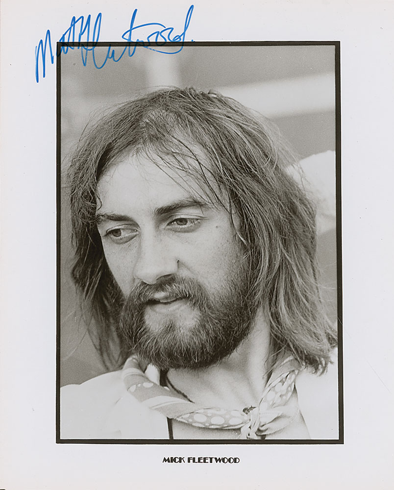 Two glossy 8 x 10 photos, one of Mick Fleetwood and one of Lindsey Buckingham, each signed in blue felt tip, with Buckingham inscribing to Linda. In fine condition, with a couple edge dings to Fleetwood’s photo. Pre-certified Roger Epperson/REAL and RR Auction COA.