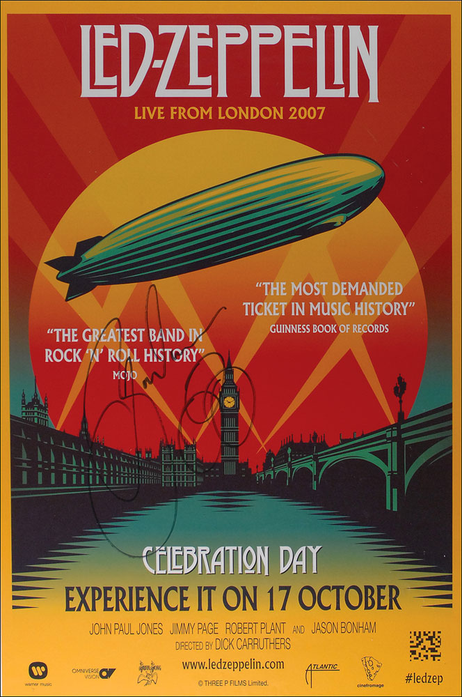 Color 20 x 30 poster for their Celebration Day film, signed in black felt tip. Rolled and in fine condition, with a few scattered light creases. Pre-certified Roger Epperson/REAL and RR Auction COA.