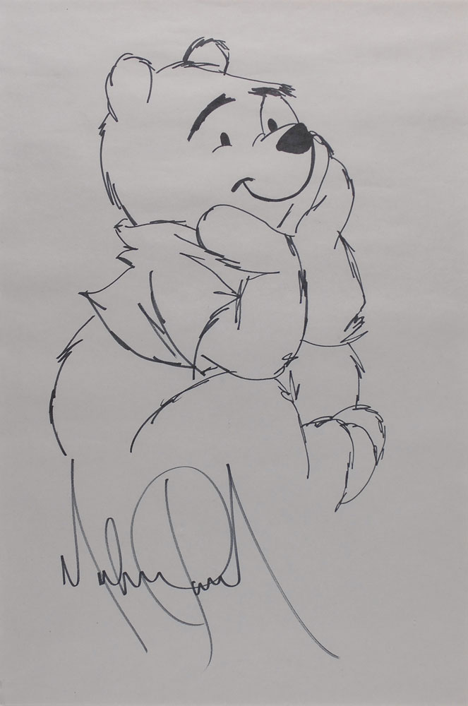 Original signed felt tip sketch of Winnie the Pooh on an off-white 12 x 18 sheet, signed at the bottom by Jackson. In fine condition. Rolled. Pre-certified Roger Epperson/REAL and RR Auction COA.