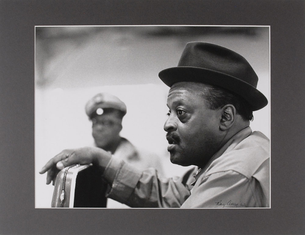 Semi-glossy 14 x 11 silver nitrate photo of Webster in profile with his hand on his saxophone case, signed in the lower corner in black felt tip by the photographer, “Ray Avery ’62.” Reverse bears a Ray Avery Photo photographer’s stamp with a copyright date of 1990. Matted to an overall size of 18 x 14. In fine condition. RR Auction COA. Learn more about Larry Rafferty.
