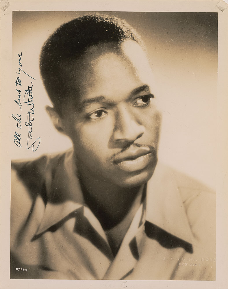 Noted African-American blues guitarist and singer (1914–1969). His political activism in the 1940s resulted in his being blacklisted, which in turn led to his still-controversial testimony before the notorious House Un-American Activities Committee. Vintage glossy 8 x 10 head-and-shoulders photo of White, vertically signed against the light background in fountain pen, “All the best to you, Josh White.” In fine condition, with tape remnants to upper corners. RR Auction COA. Learn more about Larry Rafferty.