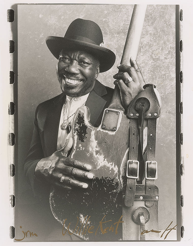 Glossy 11 x 14 Peter Amft photo of Willie Kent holding his well-used guitar, notated and signed in gold ink by the photographer, “Willie Kent, Amft.” In fine condition. RR Auction COA. Learn more about Larry Rafferty.