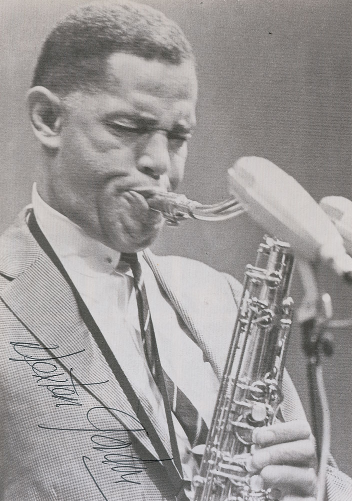 Jazz musician (1923–1990) whose career spanned over forty years. Uncommon 5.5 x 8 program photo of a young Gordon performing, signed in black ballpoint. In fine condition. RR Auction COA. Learn more about Larry Rafferty.