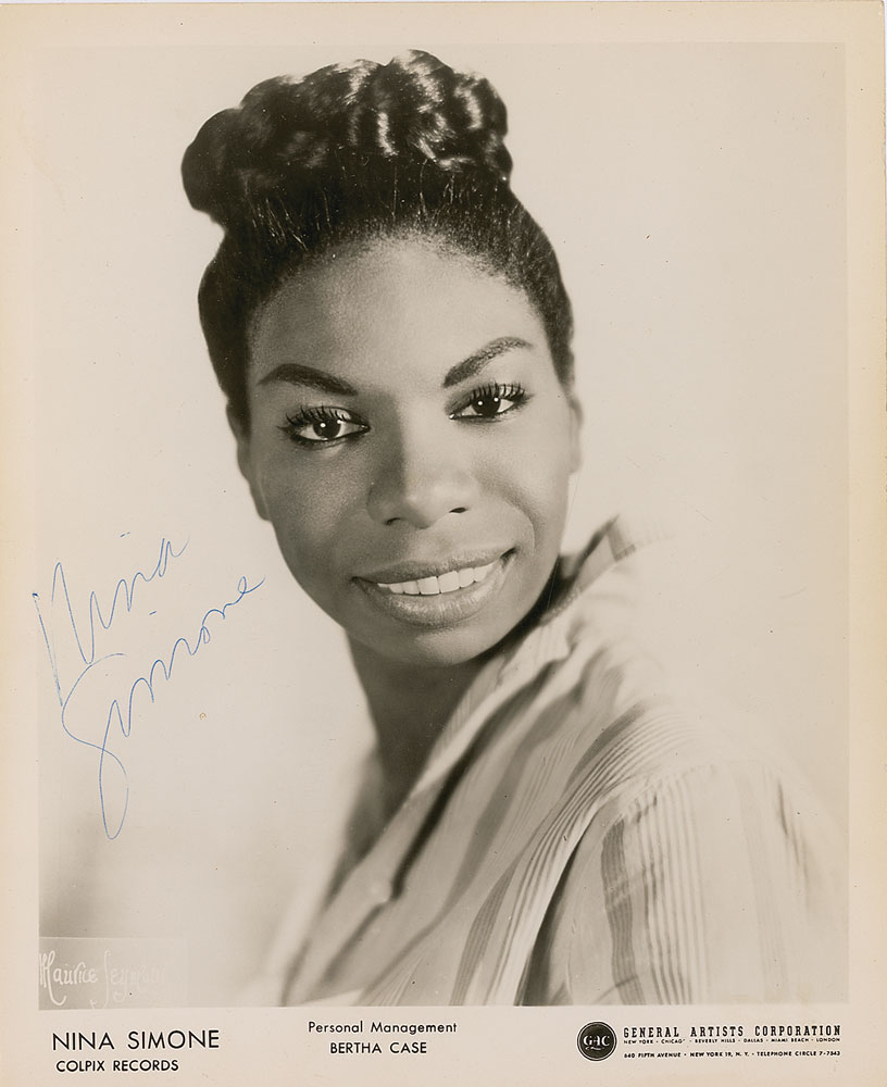 Uncommon vintage glossy 8 x 10 Colpix Records publicity photo of Simone in a striped blouse, nicely signed against the white background in blue ballpoint. In fine condition. RR Auction COA. Learn more about Larry Rafferty.