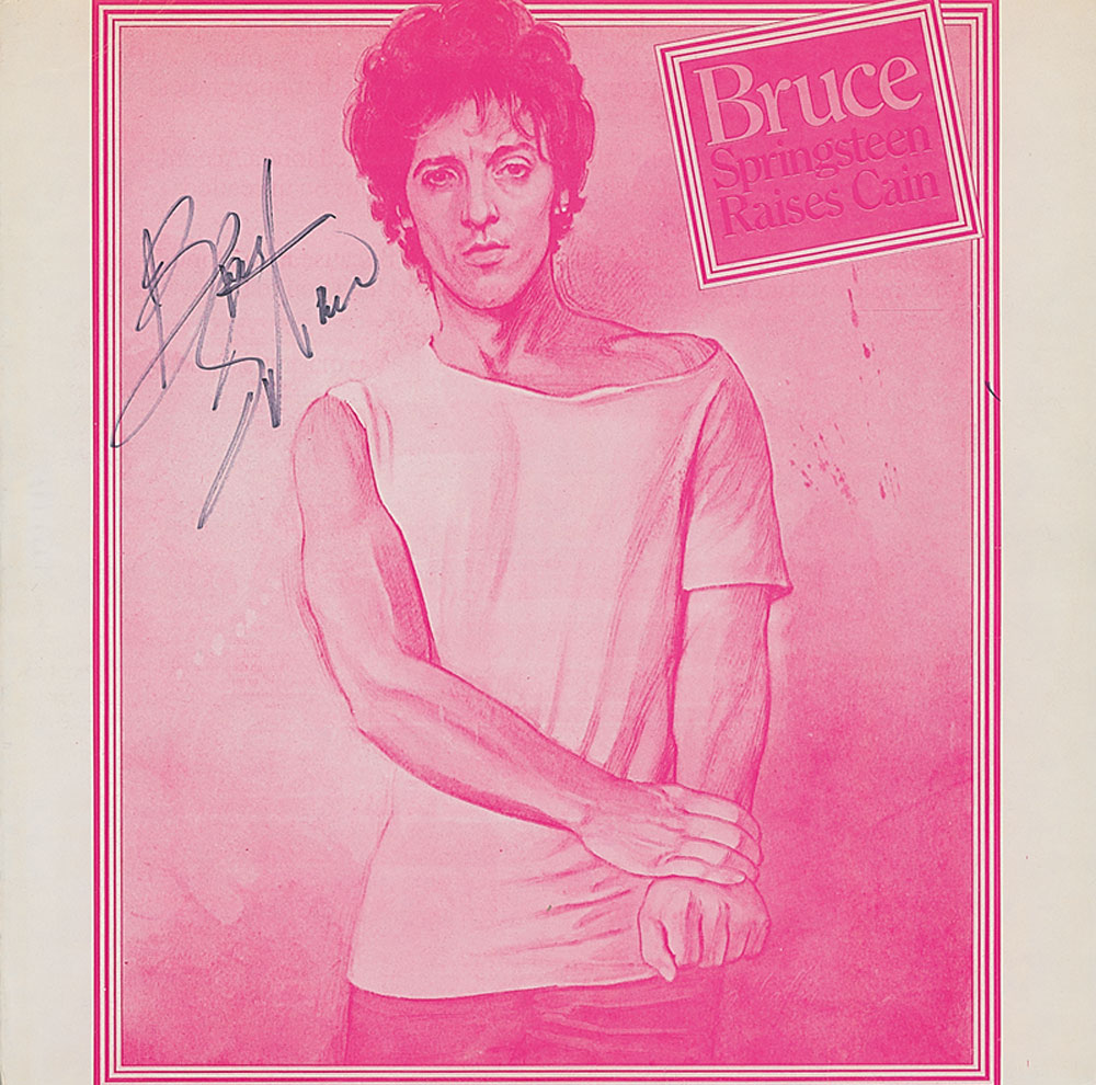 Bruce Springsteen Raises Cain album signed on the front cover in black felt tip. In fine condition, with a couple of scattered light creases. The record is not included. RR Auction COA.