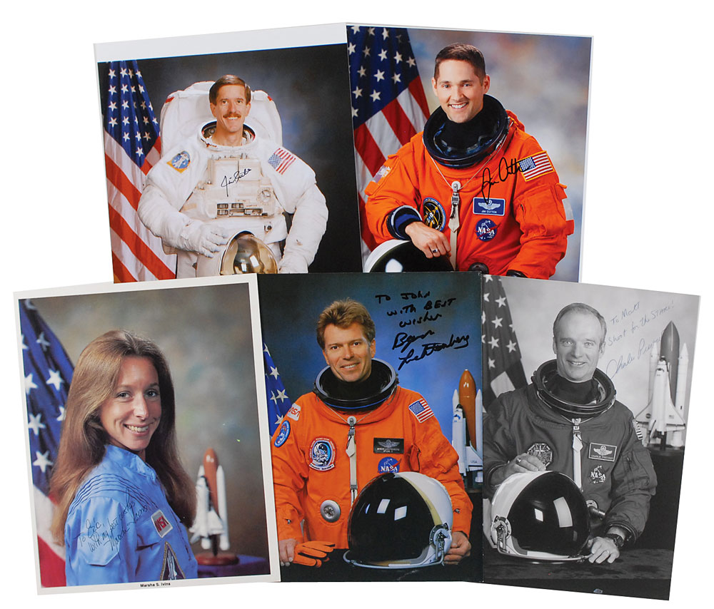 Five photos of different shuttle astronauts, 8 x 9 to 8 x 10, signed in ink by the astronaut pictured. Signers are: Byron Lichtenberg (ins), Charles Precourt (ins), Jim Dutton, Marsha S. Ivins (ins), and James Reilly. In overall fine condition. Pre-certified Steve Zarelli and RR Auction COA.