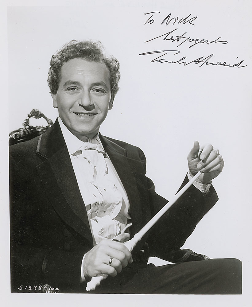 Glossy 8 x 10 photo of Henreid as he appeared in the 1947 film Song of Love, signed and inscribed in black felt tip, “To Mick, best regards, Paul Henreid.” In fine condition. Pre-certified PSA/DNA and RR Auction COA.