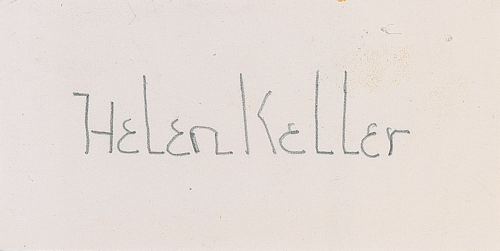 Pencil signature, “Helen Keller,” on an off-white 3.5 x 1.75 card. In fine condition. RR Auction COA.