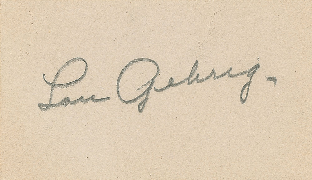 Choice vintage pencil signature, “Lou Gehrig,” on an off-white 3.5 x 2 card. In very fine condition. Doubtlessly one of the highest quality Gehrig signatures we have encountered, absolutely perfect for display. Pre-certified Steve Grad/PSA/DNA and RR Auction COA.