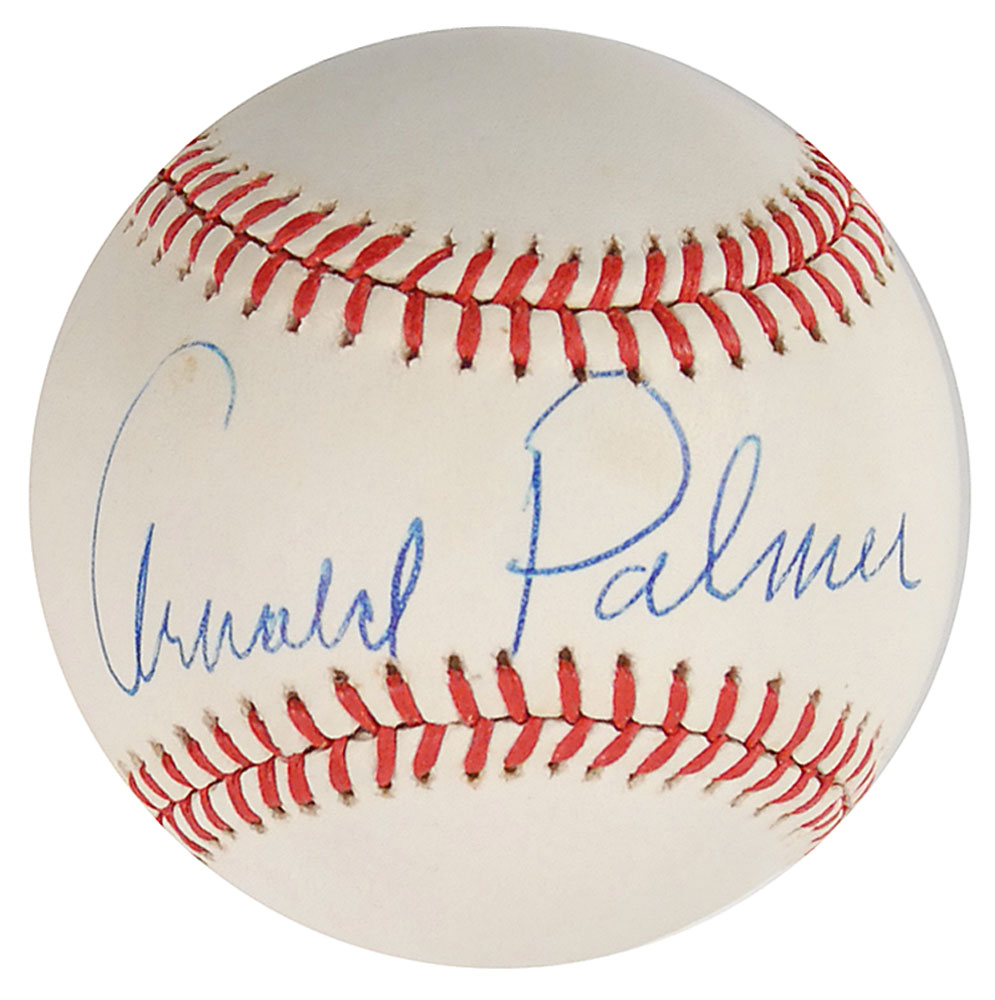 Official Rawlings American League baseball signed in blue ballpoint on the sweet spot. In fine condition, with a few spots of toning and soiling. Accompanied by a full letter of authenticity from JSA. A less common format for the golf legend. Pre-certified Steve Grad/PSA/DNA and RR Auction COA.