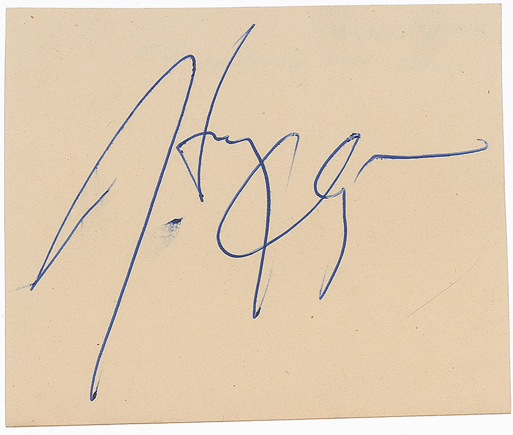 Ballpoint signature, “Harry Chapin,” on a light yellow 3.25 x 3 album page. In fine condition. Collector’s notation on reverse indicates signature was acquired at the Ulster Hall in Edinburgh in 1979. RR Auction COA.