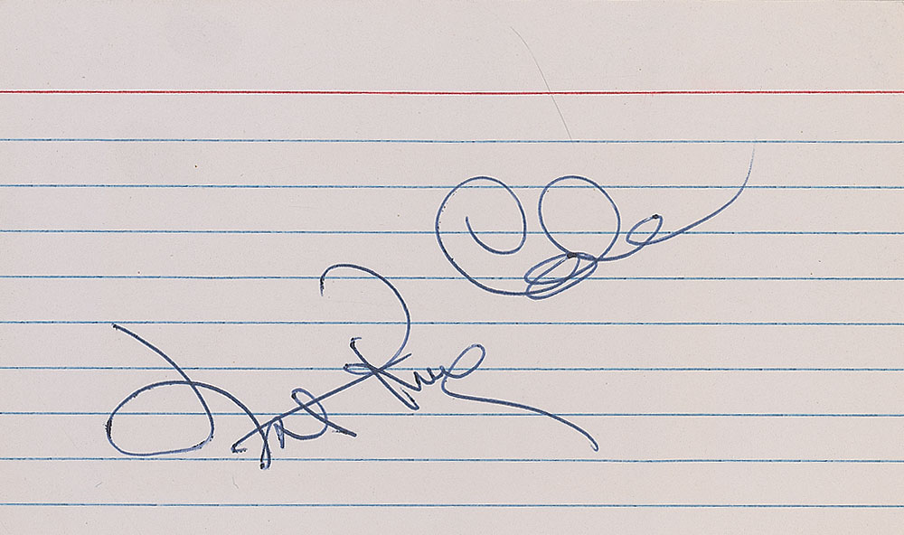 Vintage ballpoint signature, “Nat King Cole,” on an off-white 5 x 3 lightly-lined card. In very fine condition. RR Auction COA.