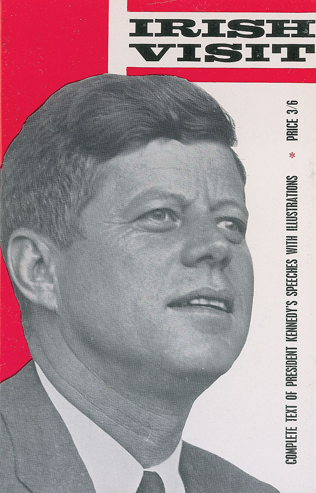 Uncommon original booklet entitled, “Irish Visit: Complete Text of President Kennedy’s Speeches with Illustrations,” 5.5 x 8.75, which was sold briefly after Kennedy’s visit to Ireland in June of 1963. In fine condition, with some mild handling wear. Copies in such good condition seldom appear for sale. RR Auction COA.