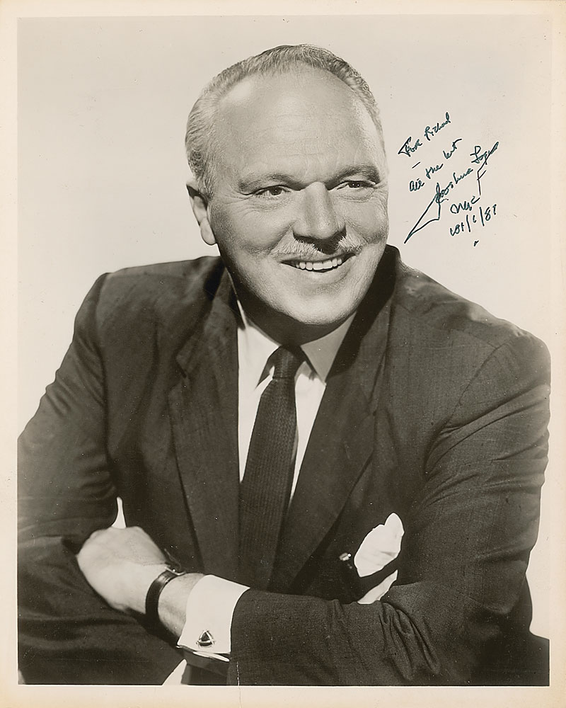 Glossy 8 x 10 photo of Logan in a suit and tie, signed and inscribed in black felt tip, “For Richard, all the best, Joshua Logan,” adding the date below. Scattered creases and a tear to bottom edge, otherwise fine condition. Pre-certified PSA/DNA and RR Auction COA.