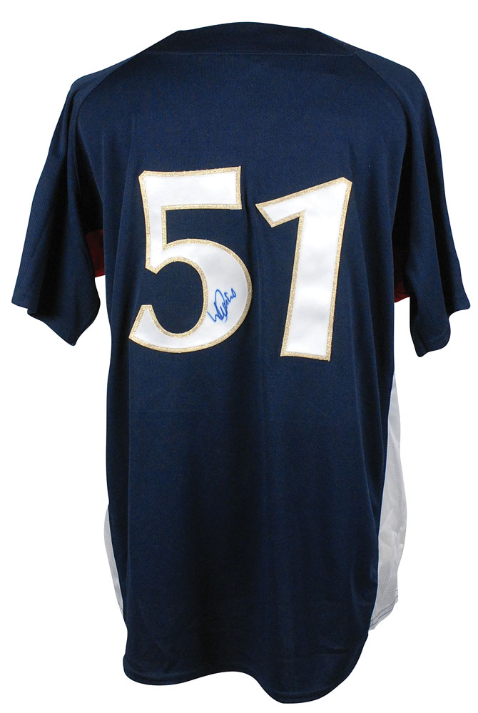 Official Majestic replica World Baseball Classic Japan baseball jersey, with sewn on letters and numbers, signed in blue felt tip on the number on the back. In fine condition, with slight spreading to ink. Pre-certified Steve Grad/PSA/DNA and RR Auction COA.