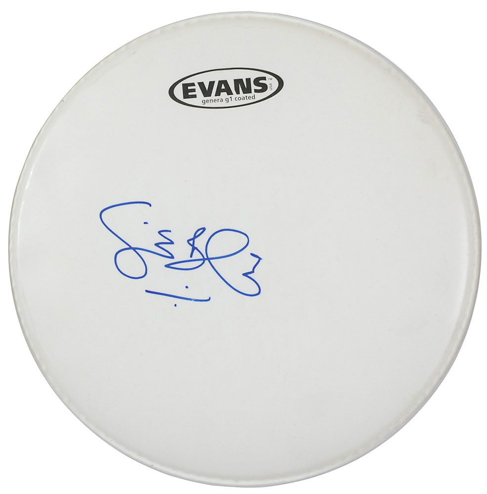 Unused 12″ Evans coated drumhead, signed in blue felt tip by Baker. Some light remnants of a previous band name label to center, otherwise fine condition. Pre-certified Roger Epperson/REAL and RR Auction COA.
