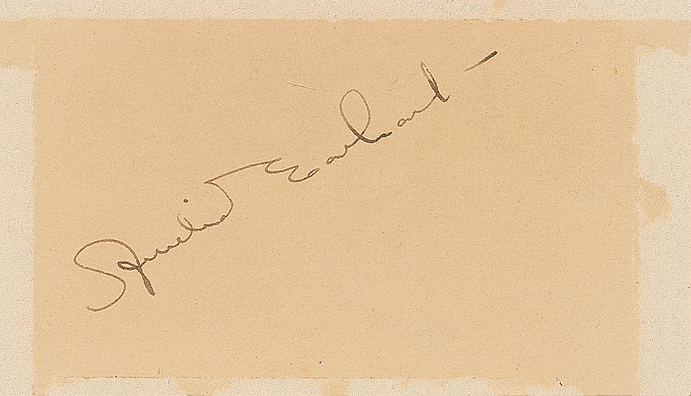 Ink signature, “Amelia Earhart,” on an off-white 3.5 x 2 card. Mounting remnants to edges, which could be matted out, and a uniform shade of light toning, otherwise fine condition. Pre-certified PSA/DNA and RR Auction COA.
