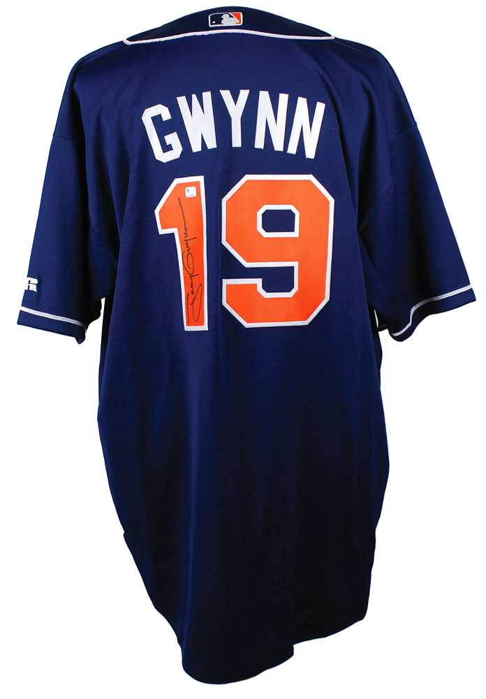 Official Russell Athletic replica San Diego Padres baseball jersey, with sewn on letters and numbers, signed in black felt tip on the number on the back. In fine condition. Pre-certified Steve Grad/PSA/DNA and RR Auction COA.