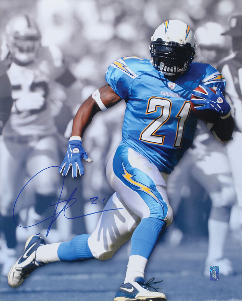 Color glossy 16 x 20 photo of Tomlinson during his prime with the San Diego Chargers, signed in blue felt tip. In fine condition. Pre-certified Steve Grad/PSA/DNA and RR Auction COA.