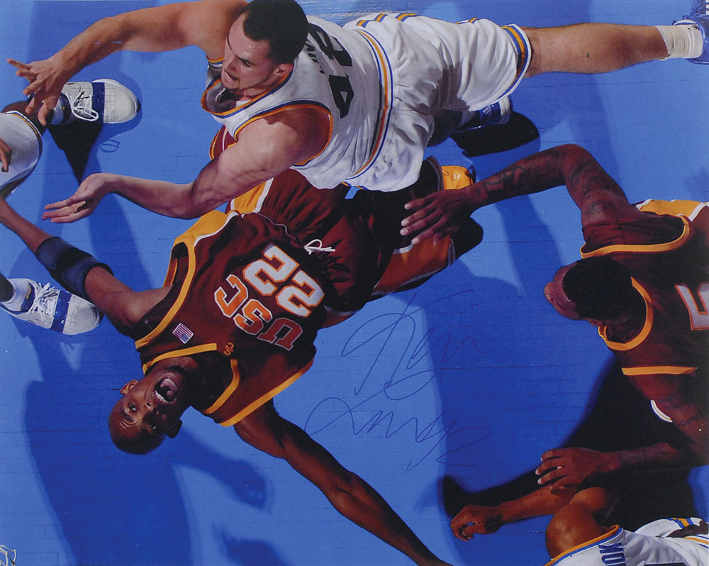 Color satin-finish 20 x 16 photo of Love battling for a rebound during his stint at UCLA, signed in blue felt tip. In fine condition. Pre-certified Steve Grad/PSA/DNA and RR Auction COA.